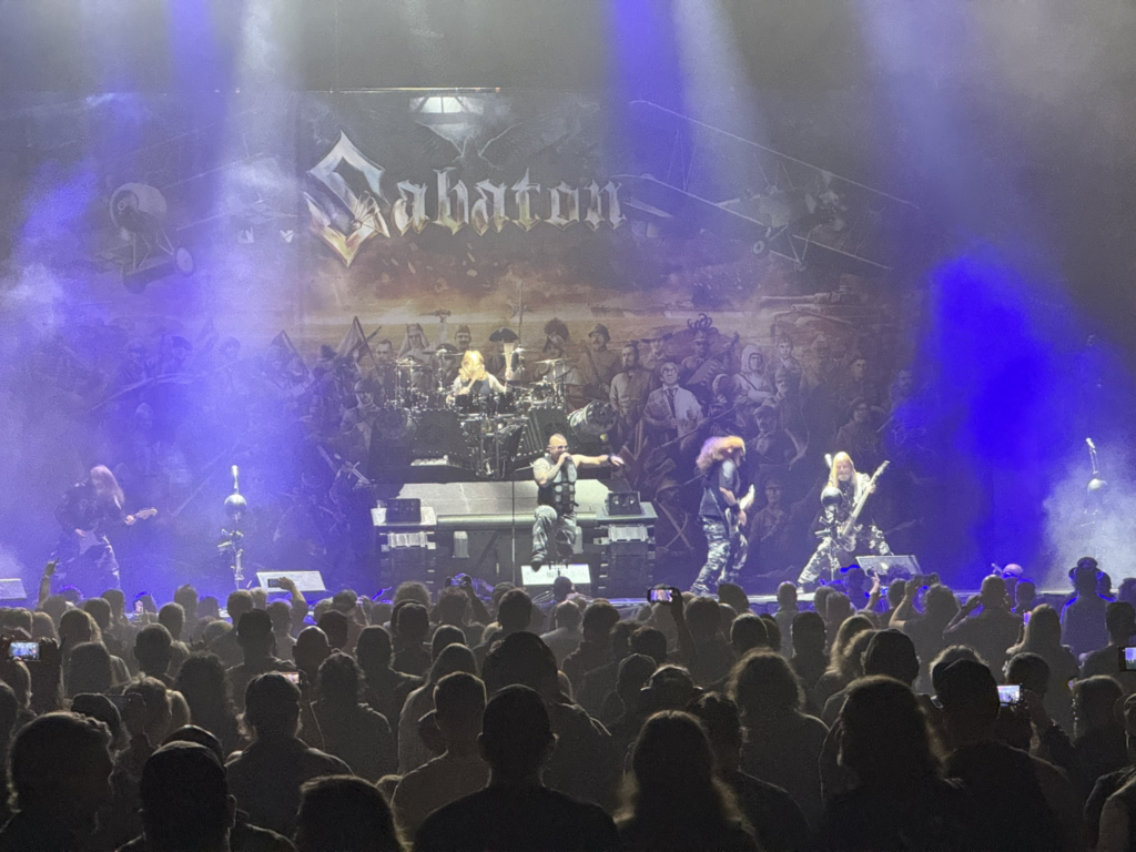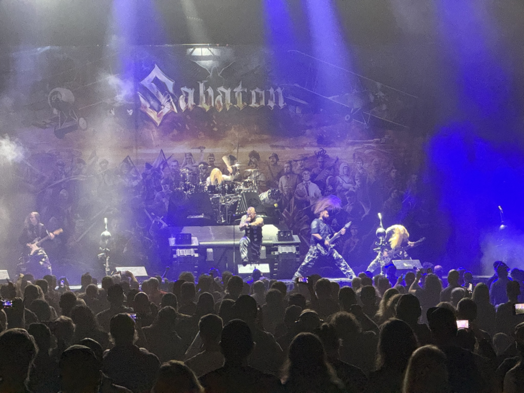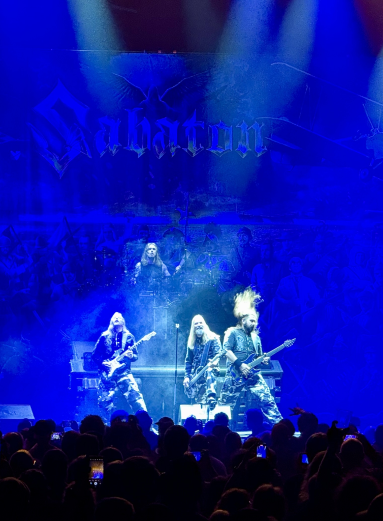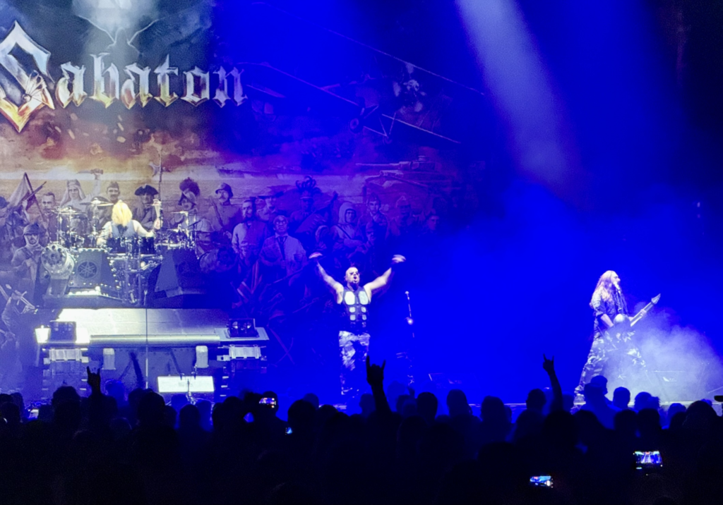 concert Sabaton power metal music band performance live music blue light stage audience silhouette rock music heavy metal