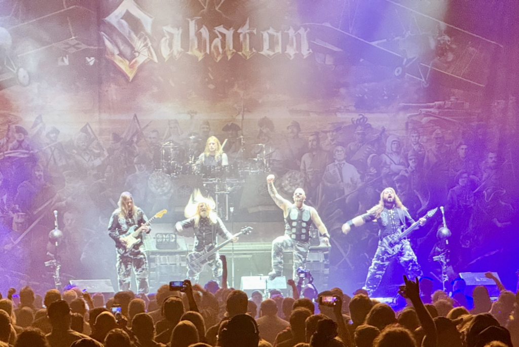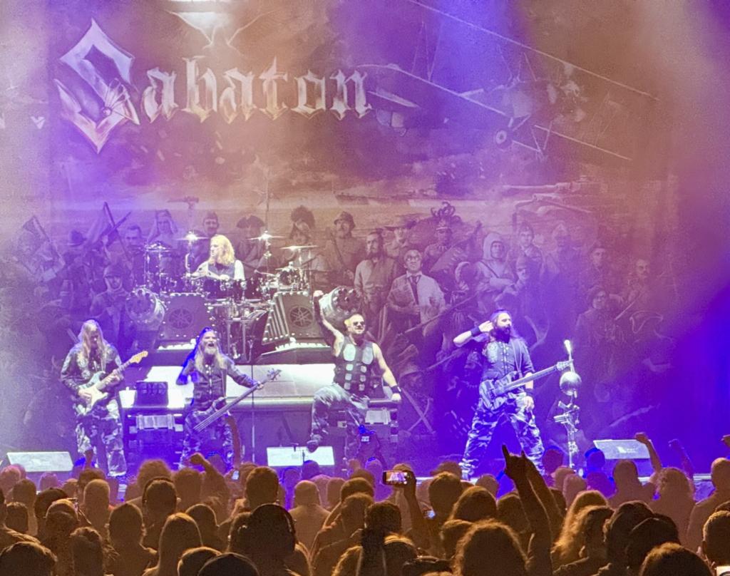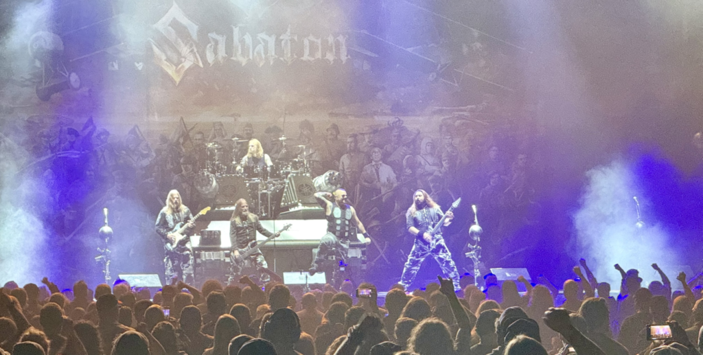 Sabaton live performance band war imagery concert crowd stage music heavy metal